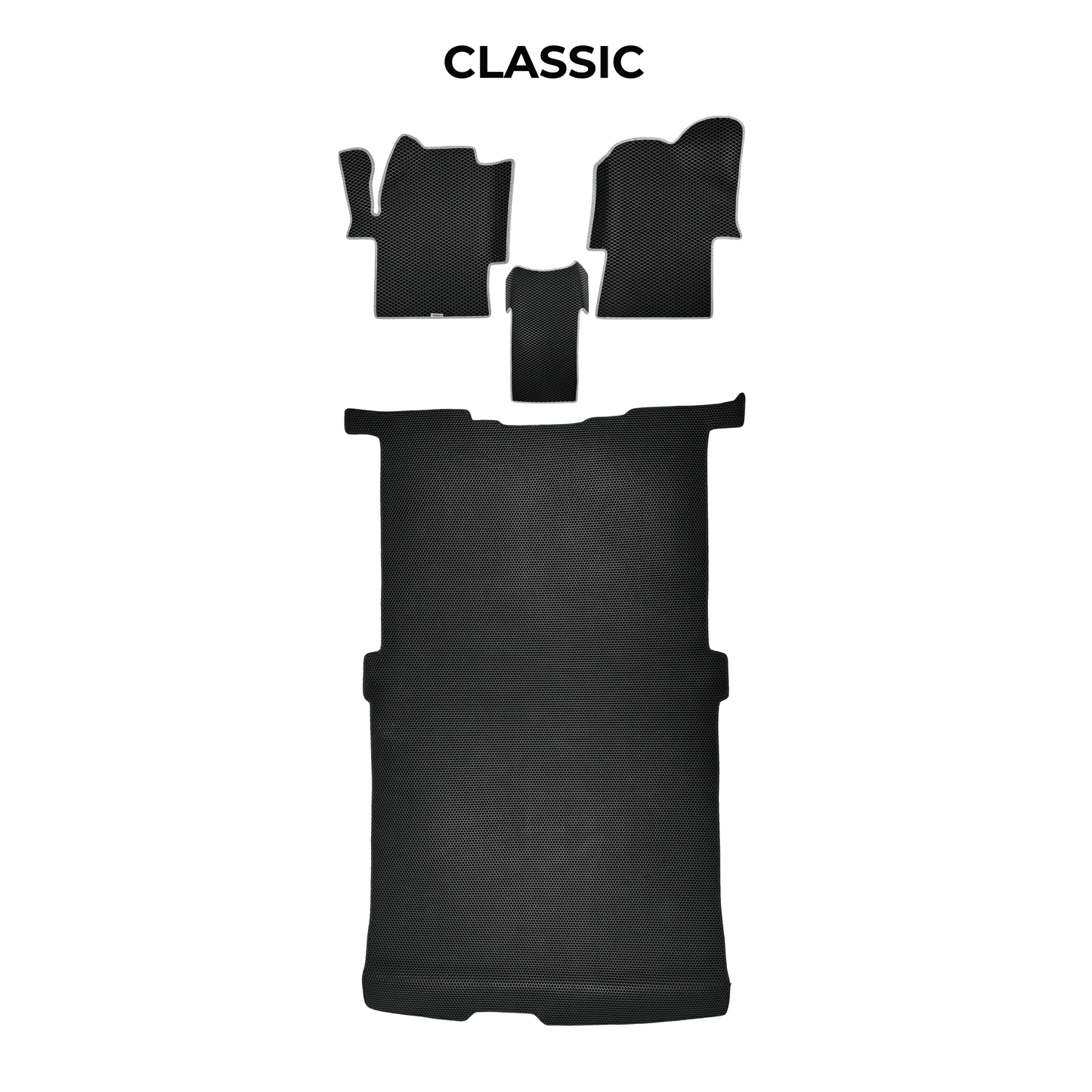 Each set is custom-made for a specific car model, precisely tailored to the shape of the floor. You can choose the color, cell pattern, and edging to perfectly match your car’s interior.